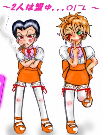 すっごい初期に描いたアンナミラーズの制服コスプレセル&アル。(セルはノリノリです)
