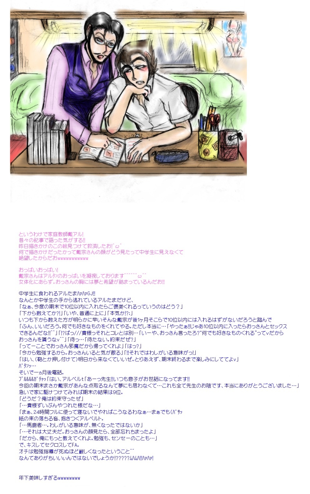 「馬鹿者、そこはこの公式を当てはめてだな…」「あーそうですねぇー(乳でけぇー)」