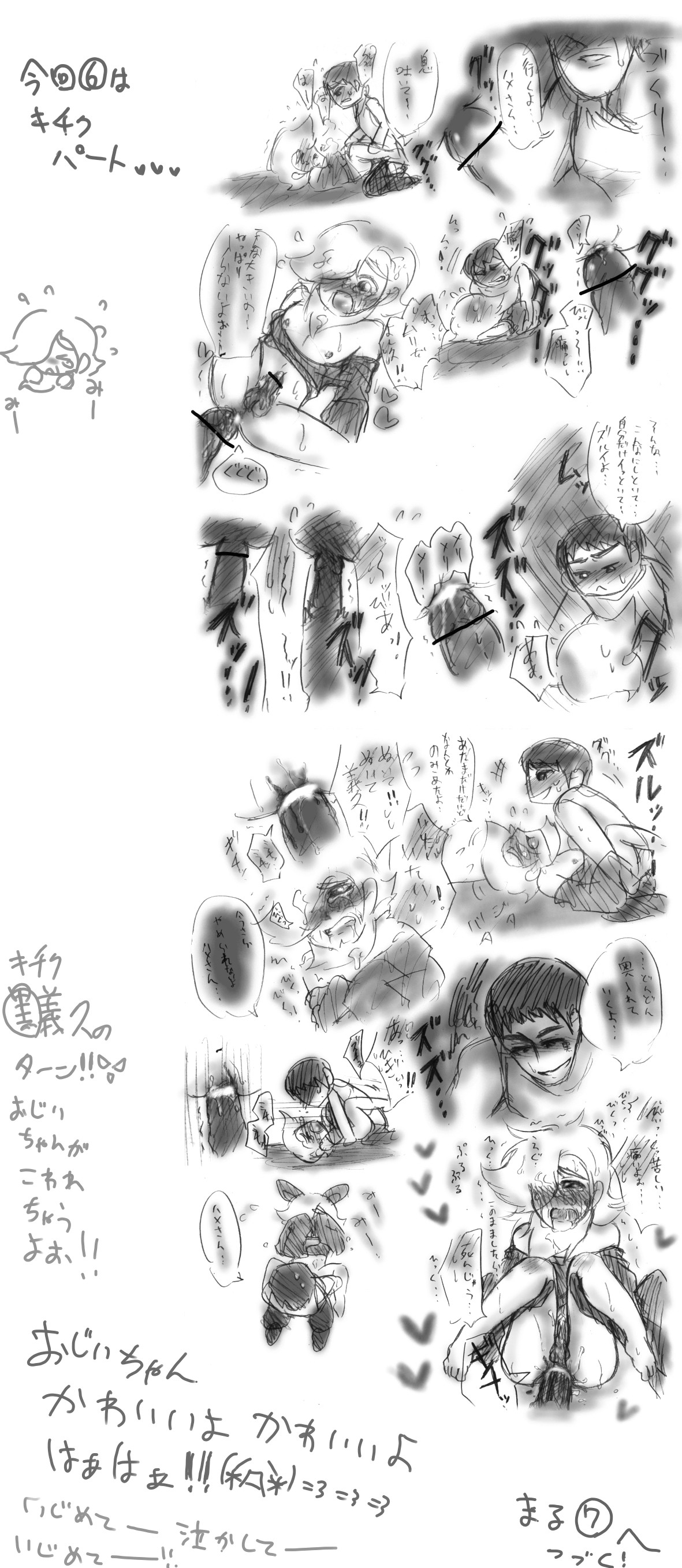 おじいちゃんと息子祭☆そのE はいおじいちゃんー!!!!!!!!息子にくぱぁしたけど息子っていうか孫が大きすぎて入らないよぉ!!(爆)そして黒義久降臨。抜いてぇ!!は最高に興奮しますね!(*´∀`*)b++傷つけたくないと言っておきながら一番義久が痛いコトしちゃったけどまぁいきり起つ息子は誰に求められないってことで☆いやーおじいちゃん泣かせたい泣かせたい!!果たしておじいちゃんはどうなるのか!?そのFへ続く